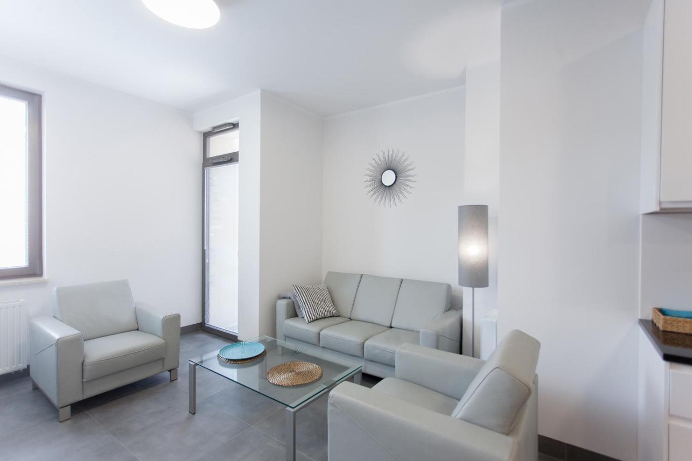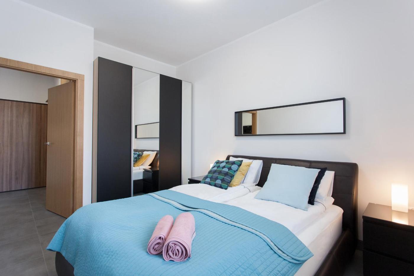 Apartament z balkonem 238. This apartment comes with 1 living room, 1 separate bedroom and 1 bathroom with a walk-in shower and a hairdryer. Guests can make meals in the kitchenette that features a stovetop, a refrigerator, a dishwasher and kitchenware. Boasting a terrace with city views, this apartment also features a washing machine and a flat-screen TV with streaming services. The unit has 1 bed. Apartament - 2 osobowy. Powierzchnia pokoju ok.: 40 mkw.