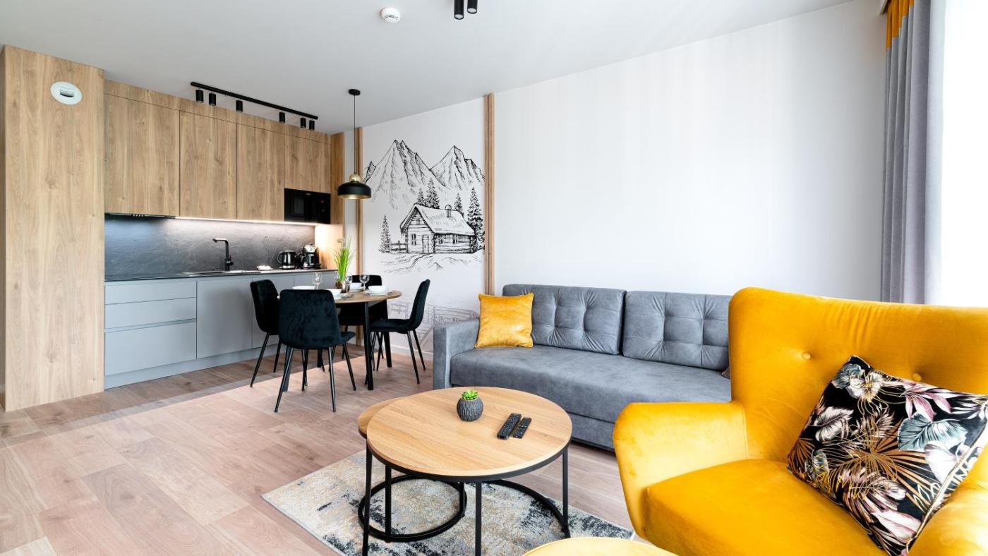 Apartament z 1 sypialnią. This apartment consists of 1 living room, 1 separate bedroom and 1 bathroom with a shower and a hairdryer. The fully equipped kitchenette features a stovetop, a refrigerator, a dishwasher and kitchenware. Featuring a balcony with mountain views, this apartment also provides a washing machine and a flat-screen TV with cable channels. The unit offers 2 beds. Apartament - 4 osobowy. Powierzchnia pokoju ok.: 40 mkw. ;