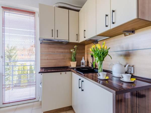 Apartament z 1 sypialnią. Boasting a private entrance, this apartment features a kitchen, 1 bedroom and 1 bathroom with a shower and a hairdryer. Guests can make meals in the kitchen that has a stovetop, a refrigerator, kitchenware and an oven. This apartment has a tea and coffee maker, a wardrobe, a flat-screen TV and a balcony. The unit has 1 bed. Apartament - 3 osobowy. Powierzchnia pokoju ok.: 29 mkw.